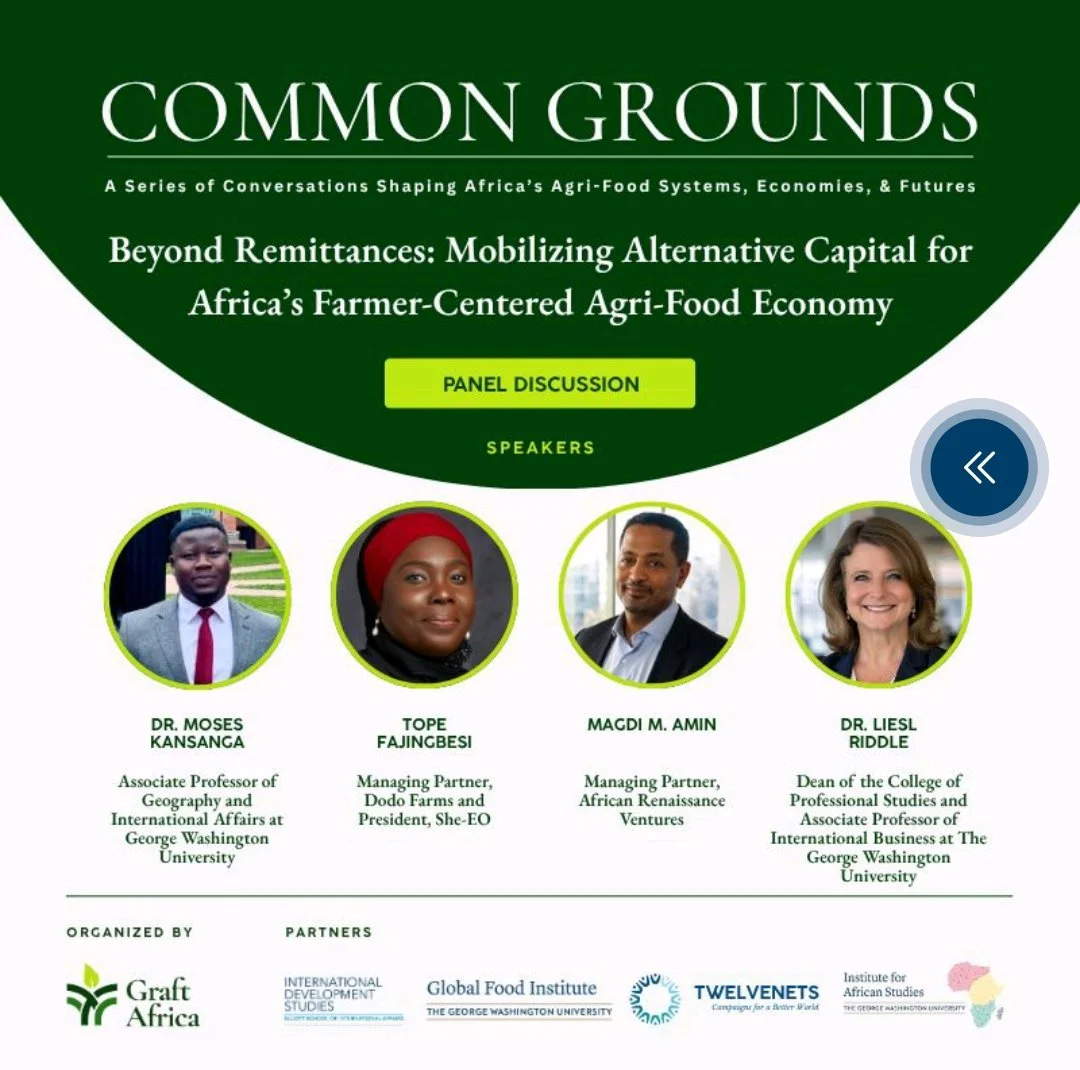 Hosted by Graft Africa in partnership with the International Development Studies Program and the Institute for African Studies at George Washington University, this event brings together investors, practitioners, and policymakers to explore innovative pathways for unlocking capital in agriculture.